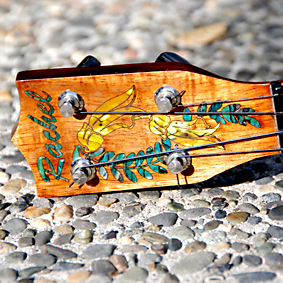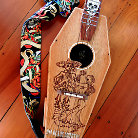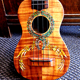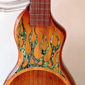 The linework you see on the coffin ukulele is acheived by